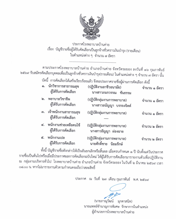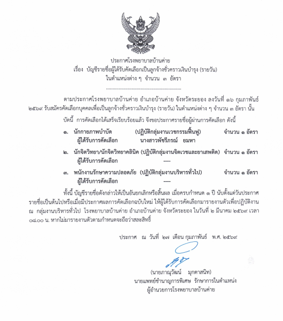 รับสมัครงานรายชื่อผู้ได้รับเลือกเป็นลูกจ้างชั่วคราว(นักโภชนาการ) Posted on กุมภาพันธ์ 2, 2026กุมภาพันธ์ 2, 2026 by bankhaihospital 02 ก.พ. Continue reading →